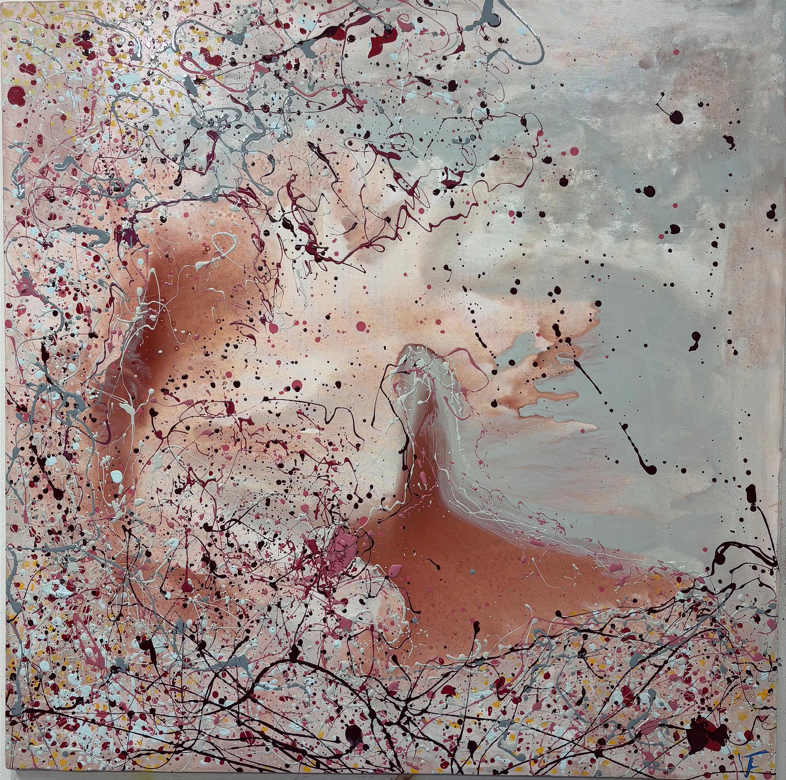 "BLOOD DROPS" presents itself as a masterful work of contemporary expressionist biomorphism with influences from visceral art and organic abstractionism. This square canvas of imposing proportions (120 x 120 cm) captures with extraordinary visual power the tension between beauty and violence, fluidity and fragmentation, life and death that blood as a substance and as a symbol embodies. The artist employs a sophisticated mixed technique, combining oil, enamel, and other materials on canvas to create a multidimensional surface where each drop, splash, and flow of intense red seems to pulse with its own life, simultaneously evoking the physical materiality of blood and its symbolic, emotional, and cultural charge deeply rooted in human experience.