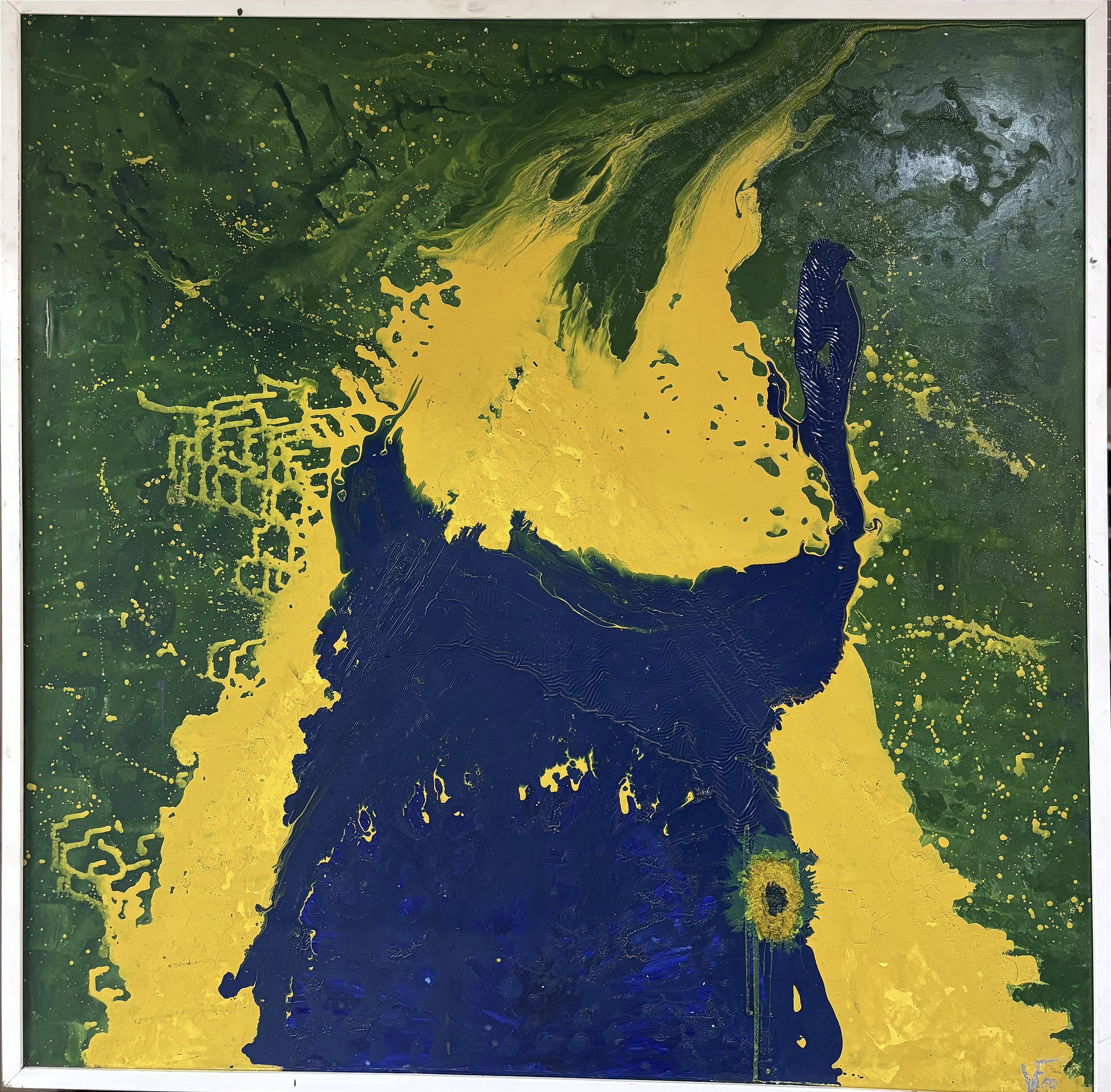 "BRAZIL" presents itself as a masterful work of contemporary neo-tropicalism with influences from abstract expressionism and Brazilian conceptual art. This square canvas of imposing proportions (120 x 120 cm) captures with extraordinary vitality the multifaceted and contradictory essence of Brazil, translating the cultural, natural, and social complexity of the country into a vibrant and polyphonic visual experience. The artist employs enamel and mixed media on canvas with a technique that privileges fluidity, transparency, and overlapping, creating a surface where each layer of material seems to dialogue with the others in a visual palimpsest that evokes the historical and cultural formation of Brazil - made of encounters, conflicts, fusions, and continuous transformations.