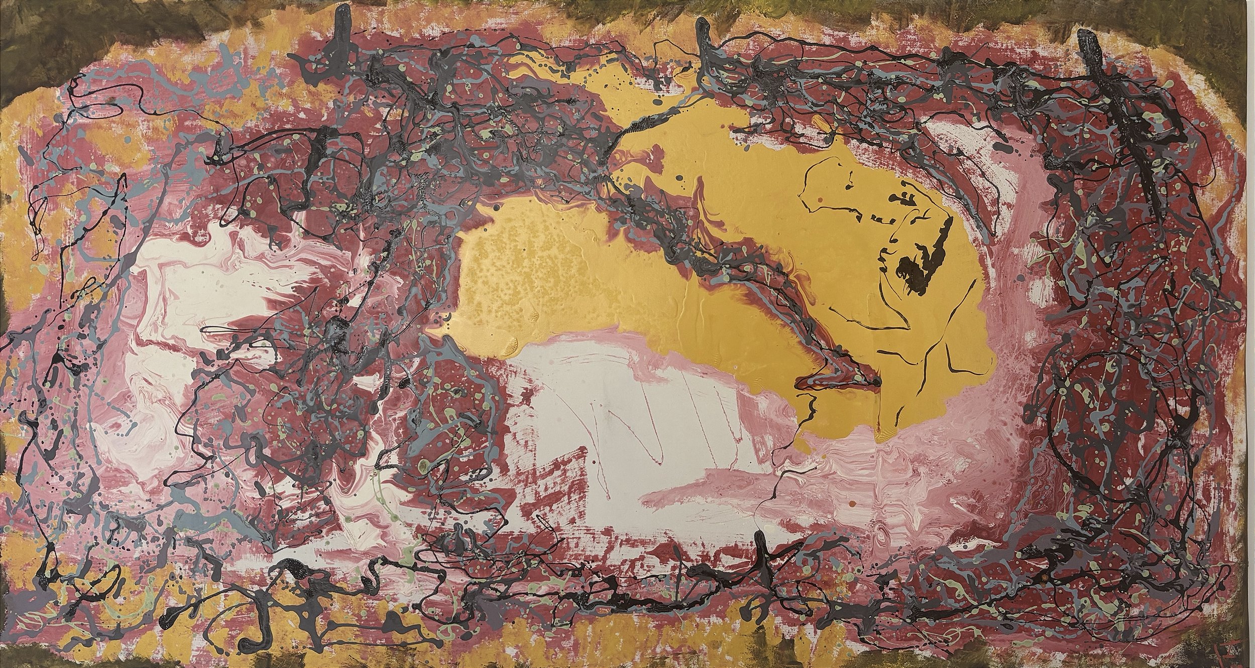 A composição horizontal expansiva convida o olhar a uma jornada panorâmica através de um horizonte imaginário onde formas nebulosas e estruturas cromáticas se dissolvem e reemergem em um fluxo constante. O artista demonstra extraordinária maestria técnica na manipulação de diferentes meios, criando uma superfície pictórica de complexidade tátil e visual impressionante. Áreas de transparência etérea contrastam com zonas de densidade material onde o esmalte cria reflexos luminosos que mudam conforme o ângulo de observação e a incidência de luz. A incorporação de mídia mista – possivelmente incluindo elementos texturais, pigmentos metálicos ou materiais refletivos – adiciona dimensionalidade à superfície, criando micro-paisagens de luz capturada que evocam tanto fenômenos astronômicos quanto topografias emocionais internas.