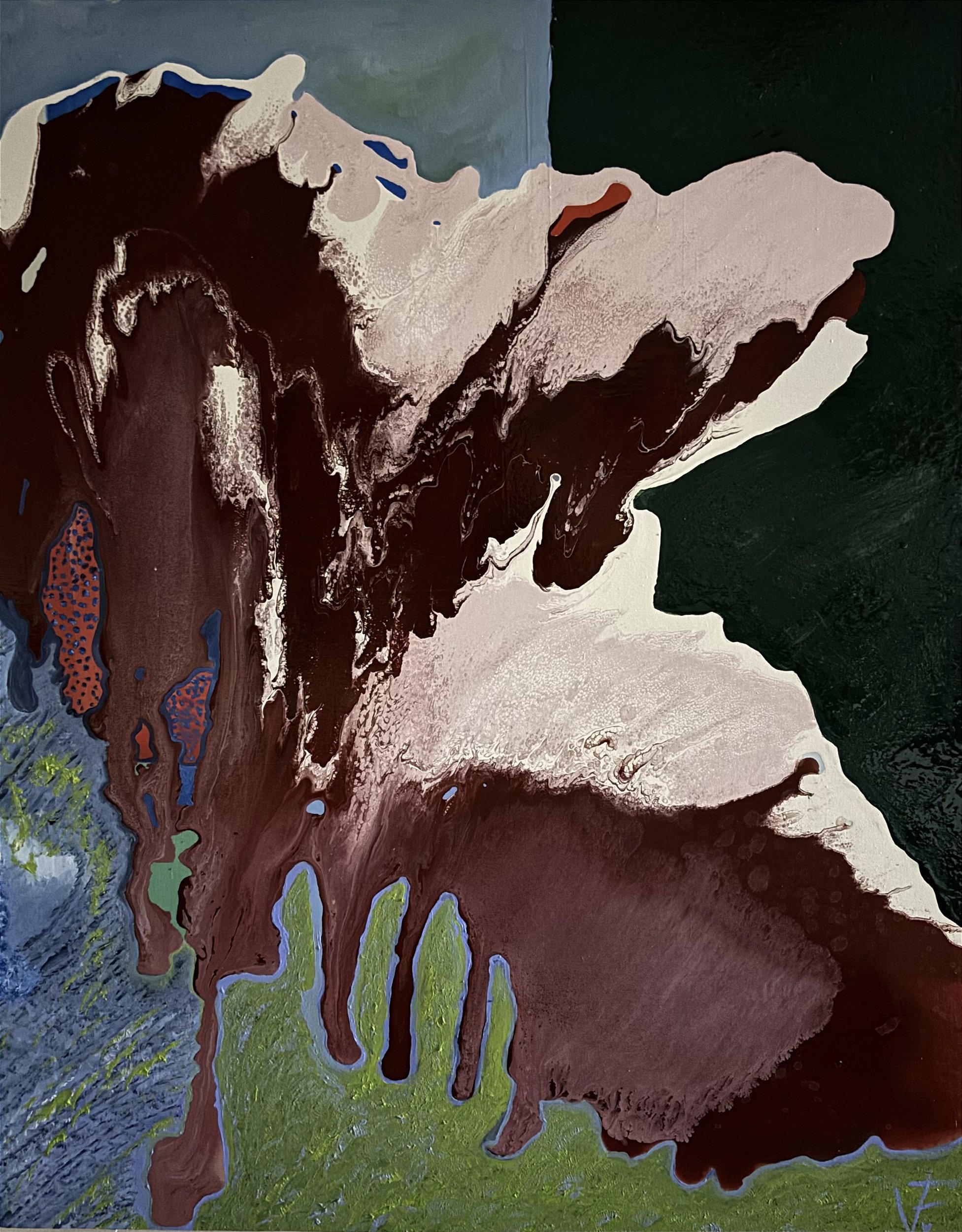 "GALINHOS" representa uma notável expressão do Abstracionismo Paisagístico Contemporâneo, com influências do Expressionismo Líquido e da Estética Geo-Emocional Brasileira. A obra captura a essência da península de Galinhos no Rio Grande do Norte, não através de representação literal, mas pela tradução sensorial de sua geografia única, onde rio e oceano se encontram em um abraço fluido. A paleta cromática privilegia tons de azul, turquesa, verde-água e dourado, evocando tanto as águas cristalinas quanto a luminosidade característica da região nordestina. O artista emprega técnicas de fluidez controlada, onde o esmalte e o óleo se encontram e se repelem, criando padrões que mimetizam o movimento das marés, correntes e o encontro das águas doce e salgada. As texturas variadas e camadas translúcidas criam profundidade visual que convida o olhar a navegar pela superfície como quem percorre as águas que circundam a península.